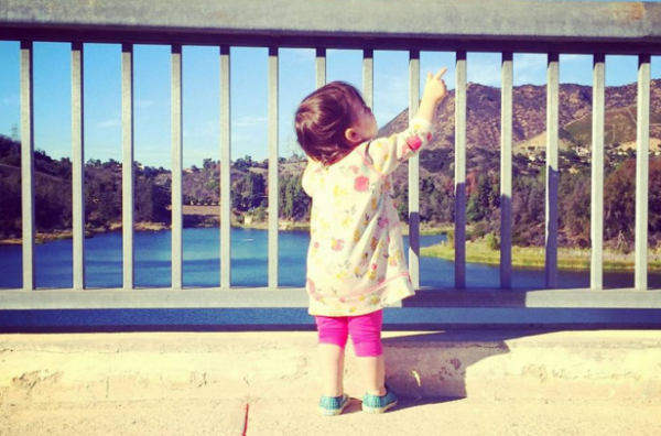 Discussing an image of Wyatt which the couple's fans and followers insist was the first "proper" photo the child's parents shared with the world, the Two and a Half Men star explained: "She is standing by a dam - and she would just jump right off that!"