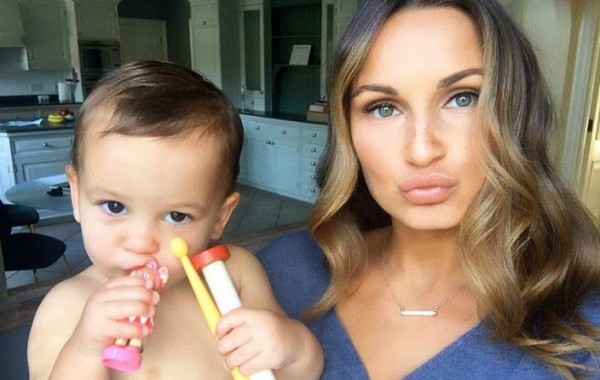 The 26-year-old took to Instagram yesterday to share a very adorable photo of her eldest child kissing his sibling on the head, and it is just the cutest.