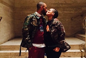 In the beautiful shot, the couple are seen gazing adoringly upon their little bundle of joy while their eldest son, four-year-old Egypt Daoud, and Swizz’s son Kasseem Dean Jr surround them.