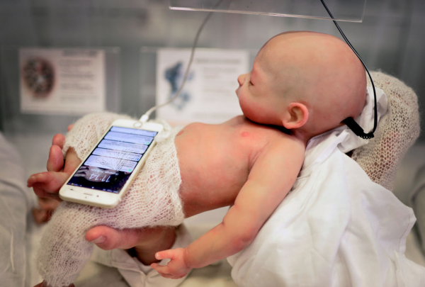 Motors make the babies seem like they are breathing and even sucking a dummy.