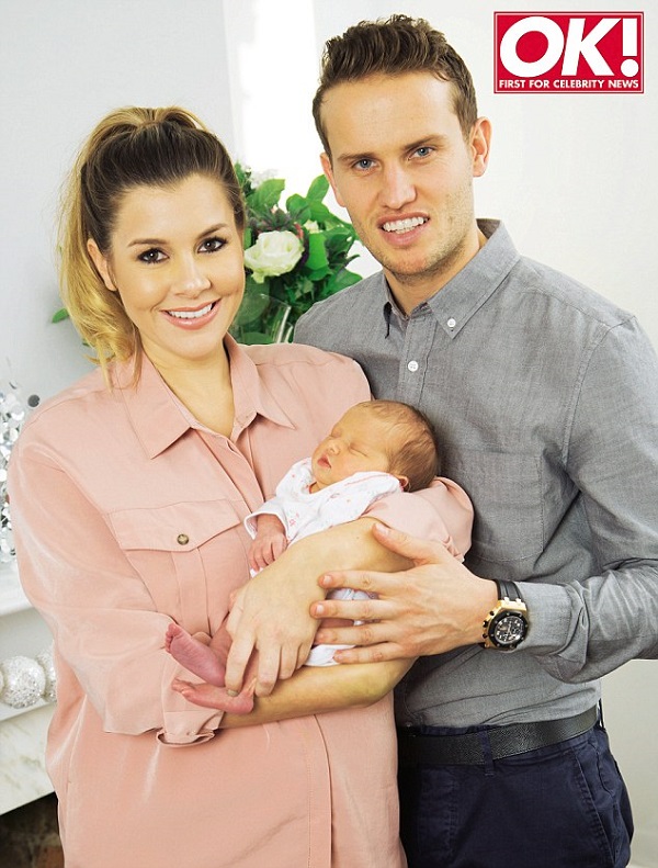 The former Big Brother star and swimwear designer posed happily for a family photo shoot for OK! magazine, going into detail about her ‘traumatic birth’ experience in an accompanying interview.