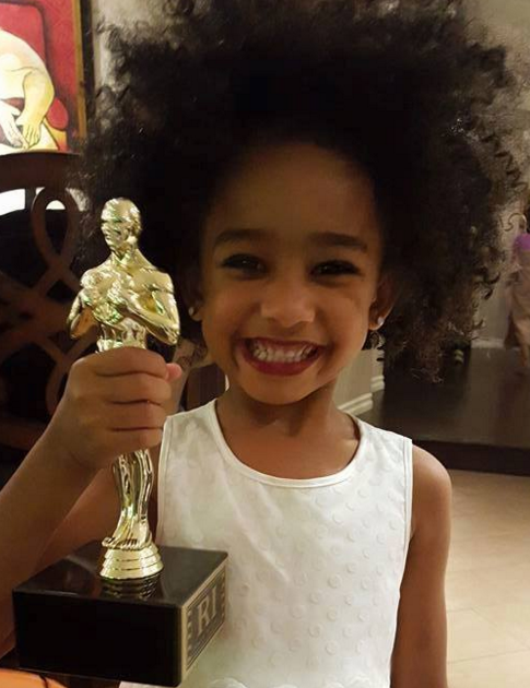 Clutching an award statue and rocking a beautiful white dress very similar to the one her mummy wore on her special night, Genesis grinned broadly for the camera and melted millions of hearts in the process.
