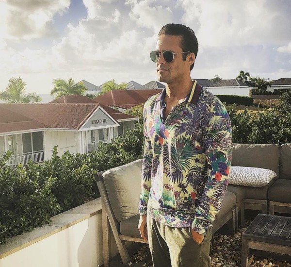 He posted a picture of himself in a brightly-patterned shirt relaxing on a rooftop.