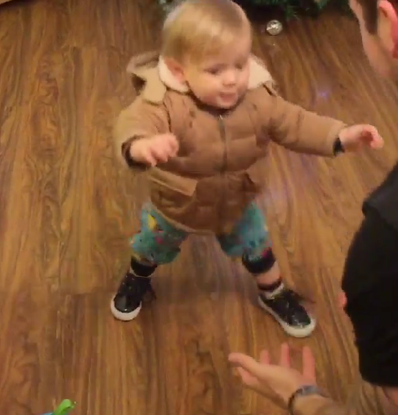 The proud father took to Instagram to share a massive milestone in his son Teddy’s life by posting footage of the little boy taking his first steps this weekend. Awww!