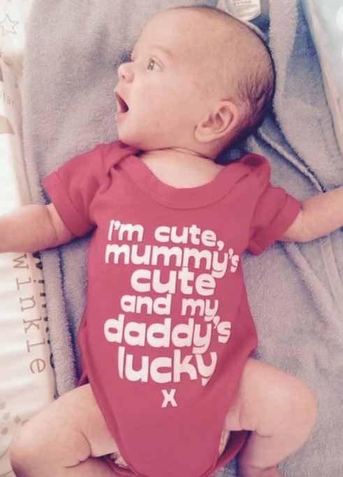 Uploading an incredibly sweet photo of Alfie sporting a babygro emblazoned with the slogan 'I'm cute, mummy's cute and my daddy's lucky', Catherine captioned the snap: "So young, yet so wise...#alfiesays"