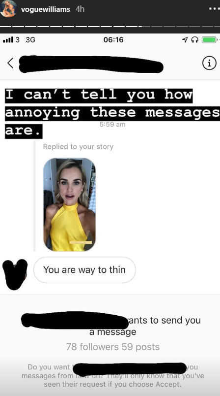 Vogue Williams is a well-known DJ, model, fitness and food guru who promotes a healthy lifestyle whenever she can, and yet is still bombarded with online comments about her weight.