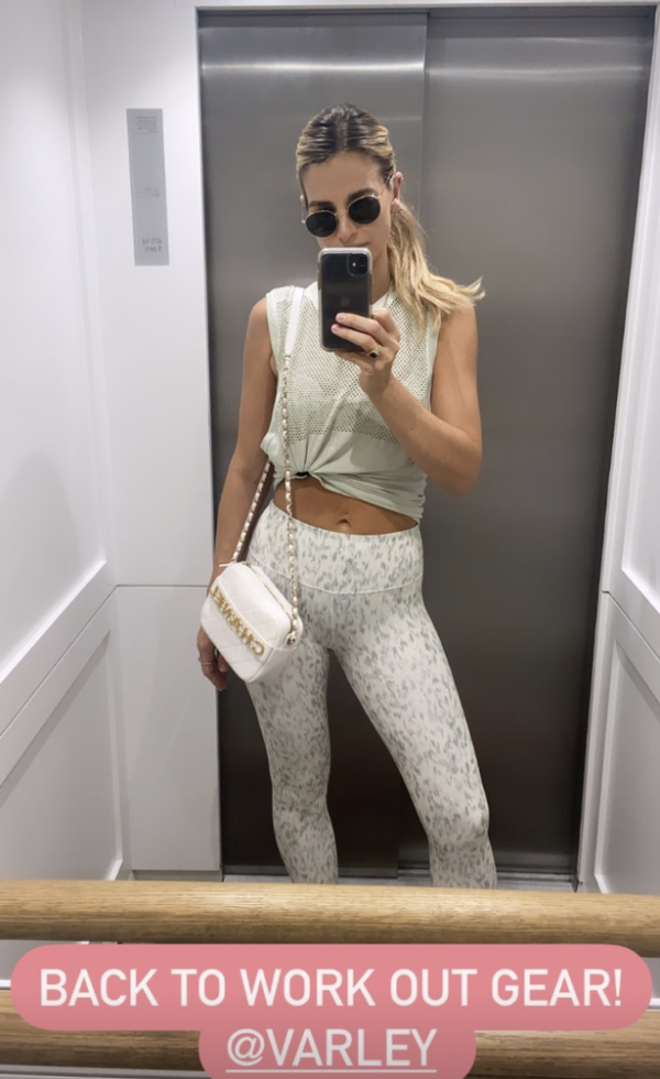 The Irish television presenter posted a selfie wearing a stylish workout set, to her Instagram stories yesterday with the caption reading, “Back to workout gear! @varley.”