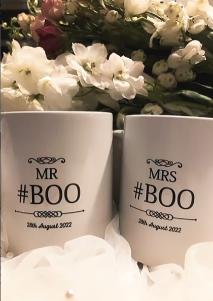 The 64-year-old posted a photo of two white mugs in front of a flower arrangement. One of the mugs read, ‘#Mr Boo 28th August 2022’, while the other read, ‘#Mrs Boo 28th August 2022”.