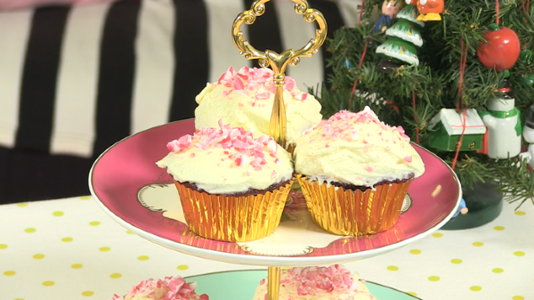 Scatter some crushed candy canes on top of each cupcake.